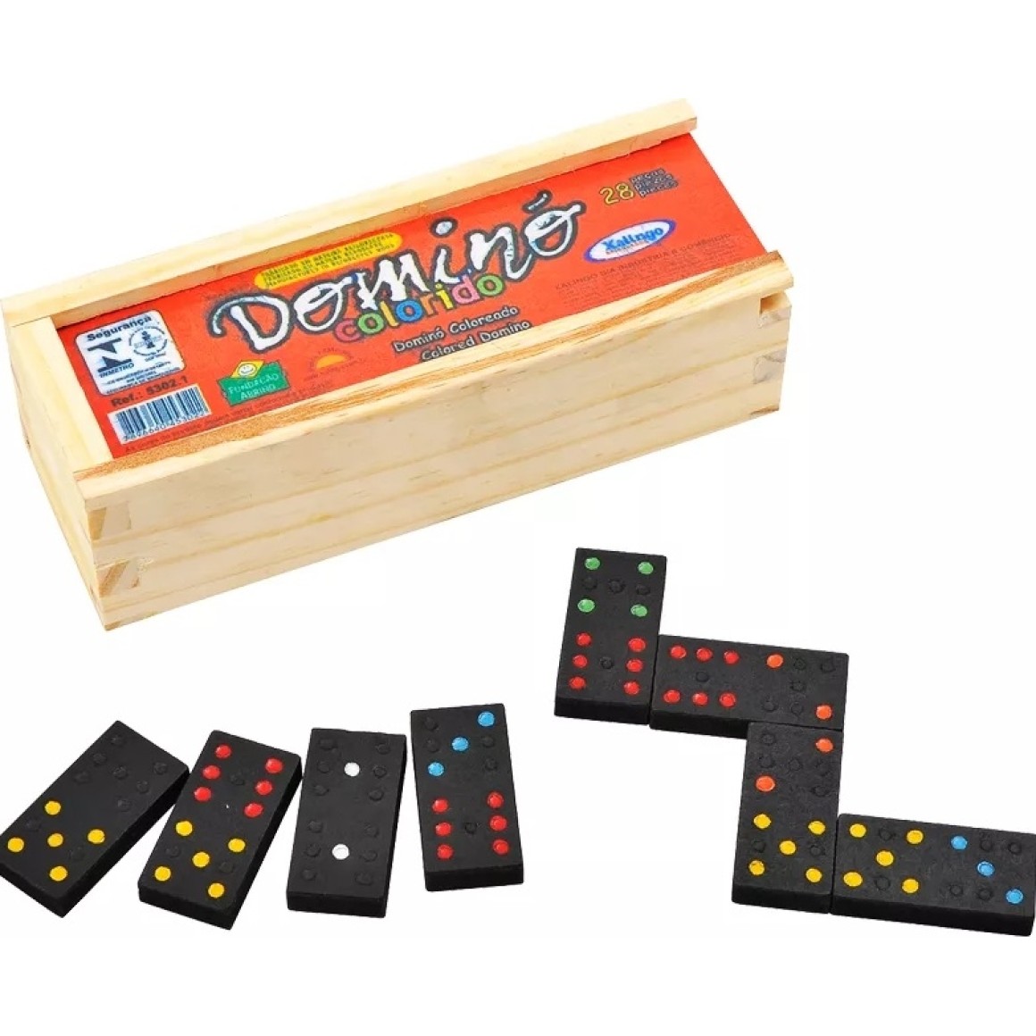 São 28 pedras de madeira com pingos coloridos dipostos em uma linda caixa de madeira.