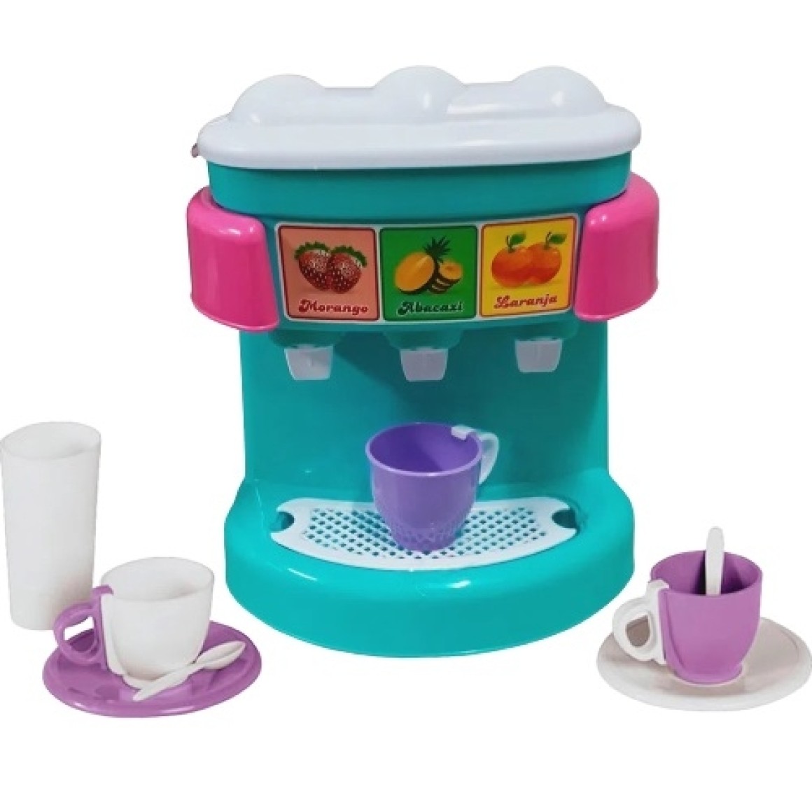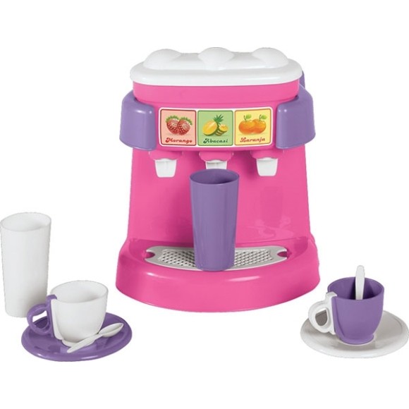A Máquina de Café e Suco tem cores super charmosas e sai o líquido de verdade! De um lado, você pode colocar café, chá, chocolate ou capuchino. Do outro até três sabores de suco! Sua pequena chef vai adorar!