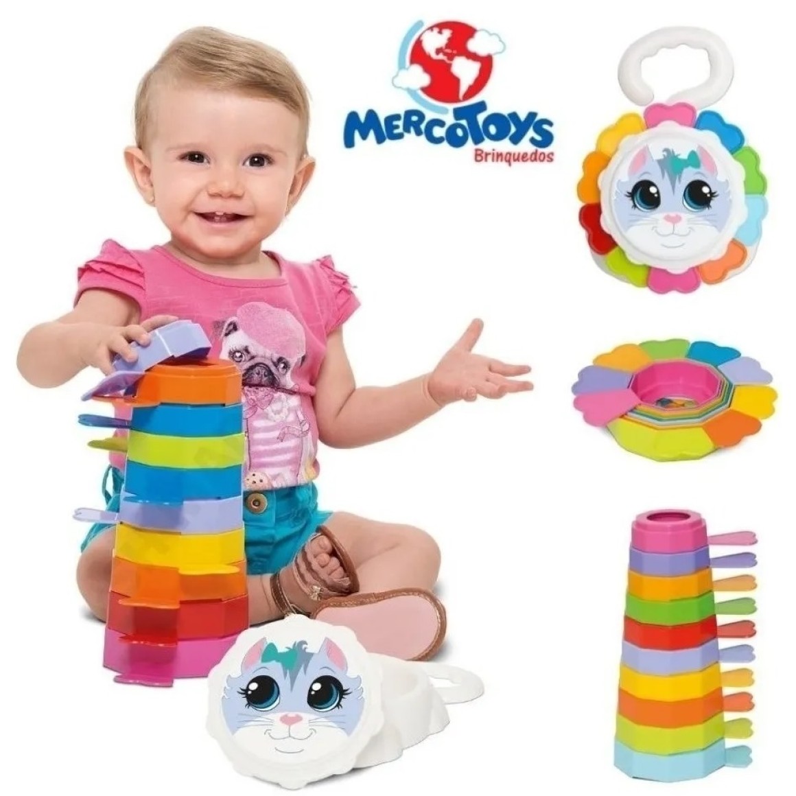 Brinquedo compacto com diferentes formas geométricas, cores e tamanho.