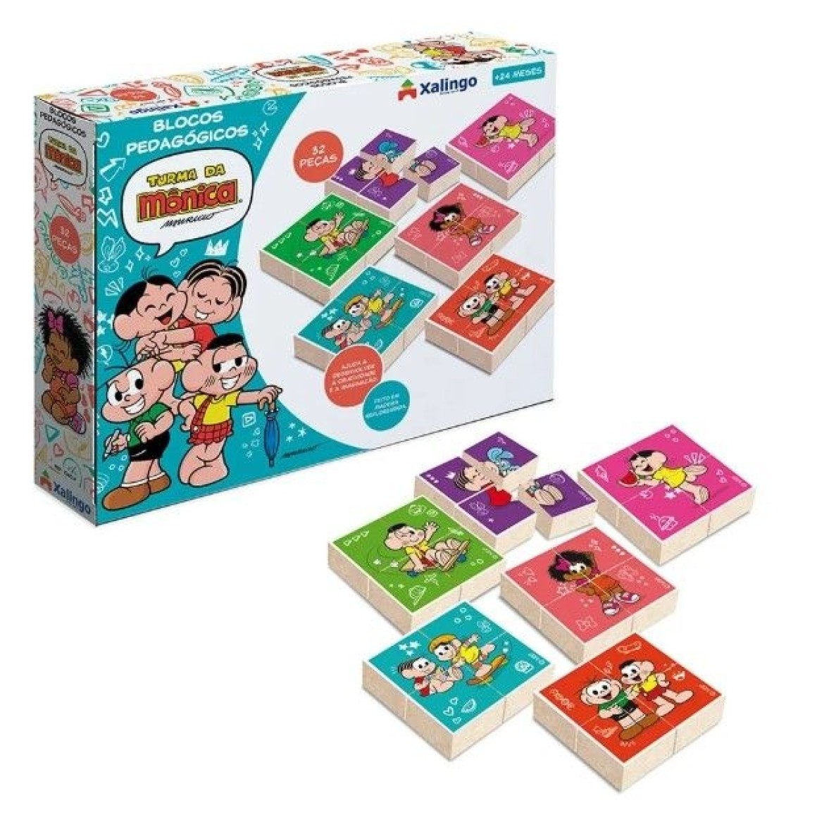 Os blocos pedagógicos da Turma da Mônica são pequenos quebra cabeças formados por 4 peças cada, que formam cenas divertidas.