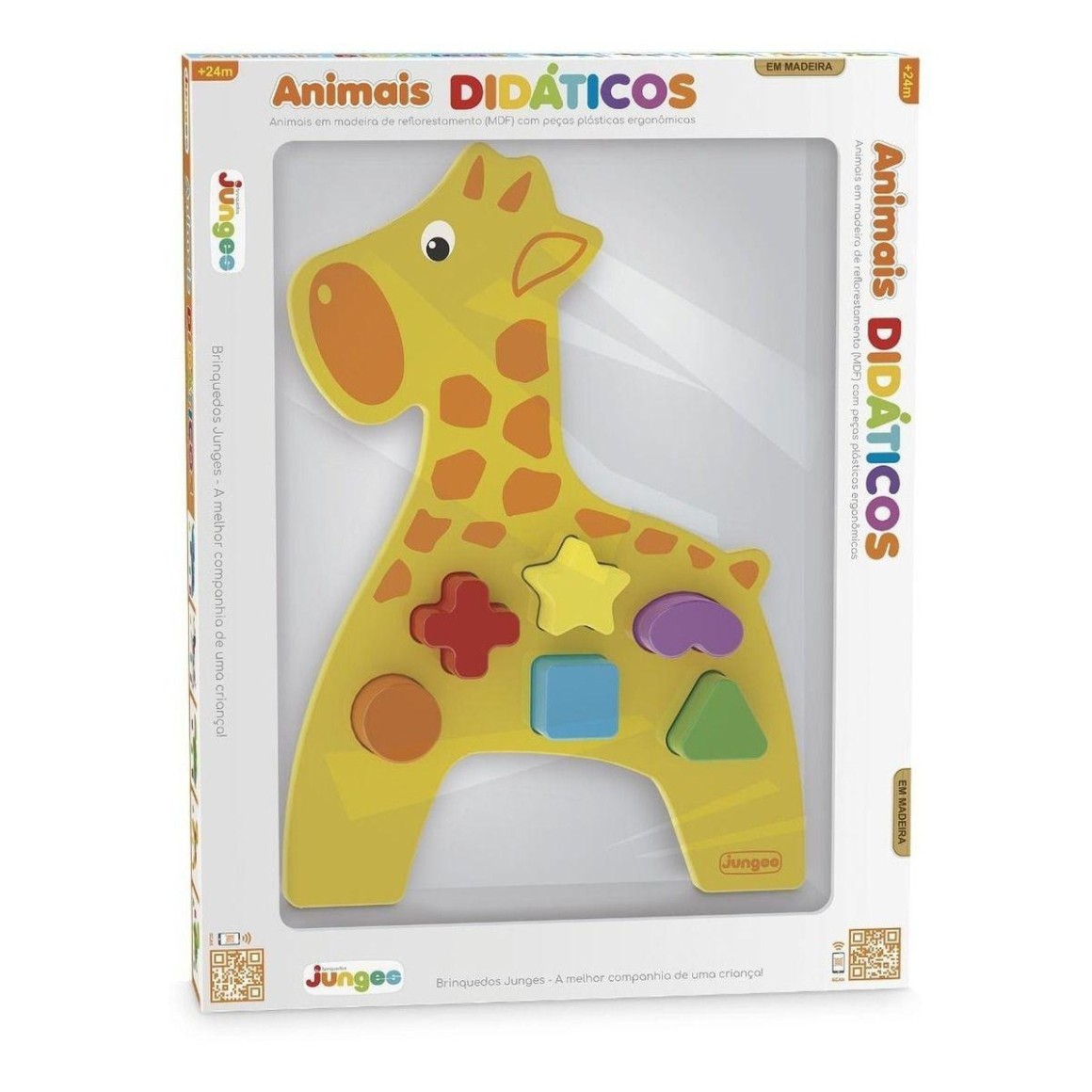 Os animais Didáticos da Brinquedos Junges são brinquedos de encaixe alegres e coloridos que proporcionam uma divertida brincadeira de associação. Produzidos em madeira de reflorestamento (MDF os animais possuem acabamento ergonômico, com pintura atóxica a base de água e impressão em serigrafia. Ideal para estimular coordenação motora fina, coordenação entre olhos e mãos. Identificação de cores e formas, Estimular o raciocínio lógico e desenvolver a atenção e concentração. os animais didáticos são perfeitos para que a criança aprenda e se divirta ao mesmo tempo! dade recomendada: + 24 meses
