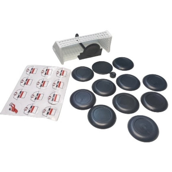 Diversas cores, tem 10 botões, uma palheta, uma bolinha, um goleiro e uma trave
