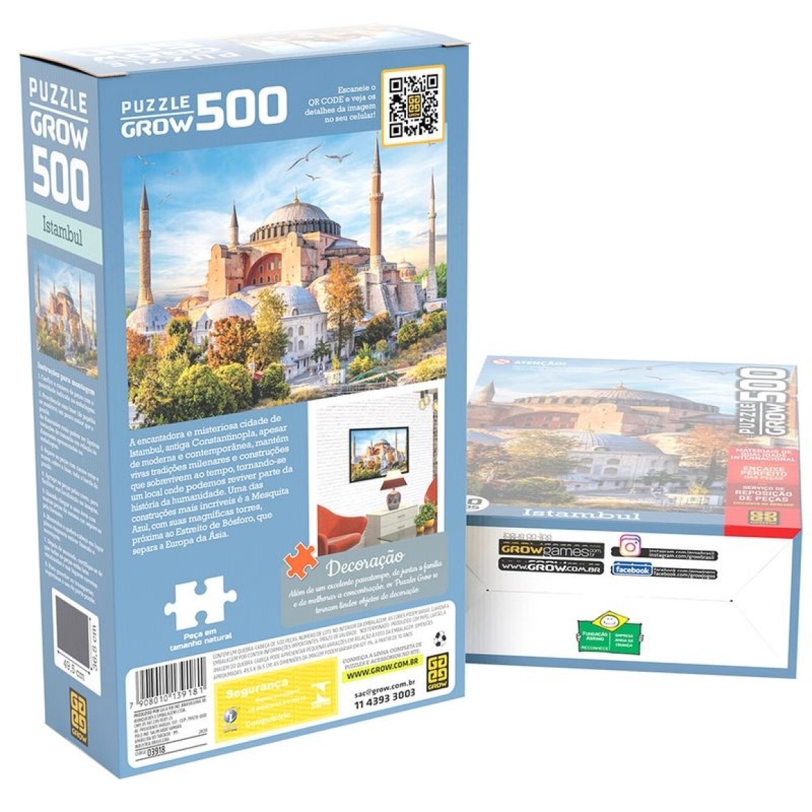 Não deixe de se divertir com este quebra-cabeça! São 500 peças, para você encaixar uma a uma até formar uma linda imagem de Istambul. Mais que um passatempo divertido, os quebra-cabeças desenvolvem o raciocínio, relaxam e se transformam num autêntico hobby. A Grow é pioneira e referência em quebra-cabeças no Brasil, desde 1977. Os melhores materiais são cuidadosamente selecionados sempre buscando qualidade para garantir um encaixe preciso e uma ótima experiência de montagem.
