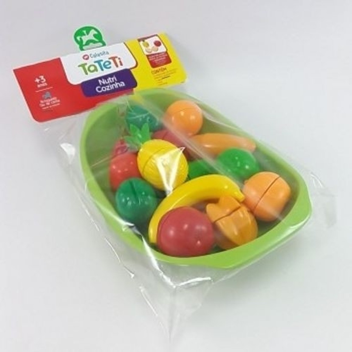 também pepino e o tomate. E para quem tem outra vontade é só escolher entre abacaxi, carambola, maçã, morango, melancia, pêra, pêssego ou banana. Todas as escolhas prometem diversão pra semana. Além da bela Fruteira, verduras e frutas com velcro, a Nutri Cozinha acompanha uma tábua de cortar com faca para brincar de cozinhar. Ah, sem falar no creck-creck, o barulhinho com gostinho de infância.