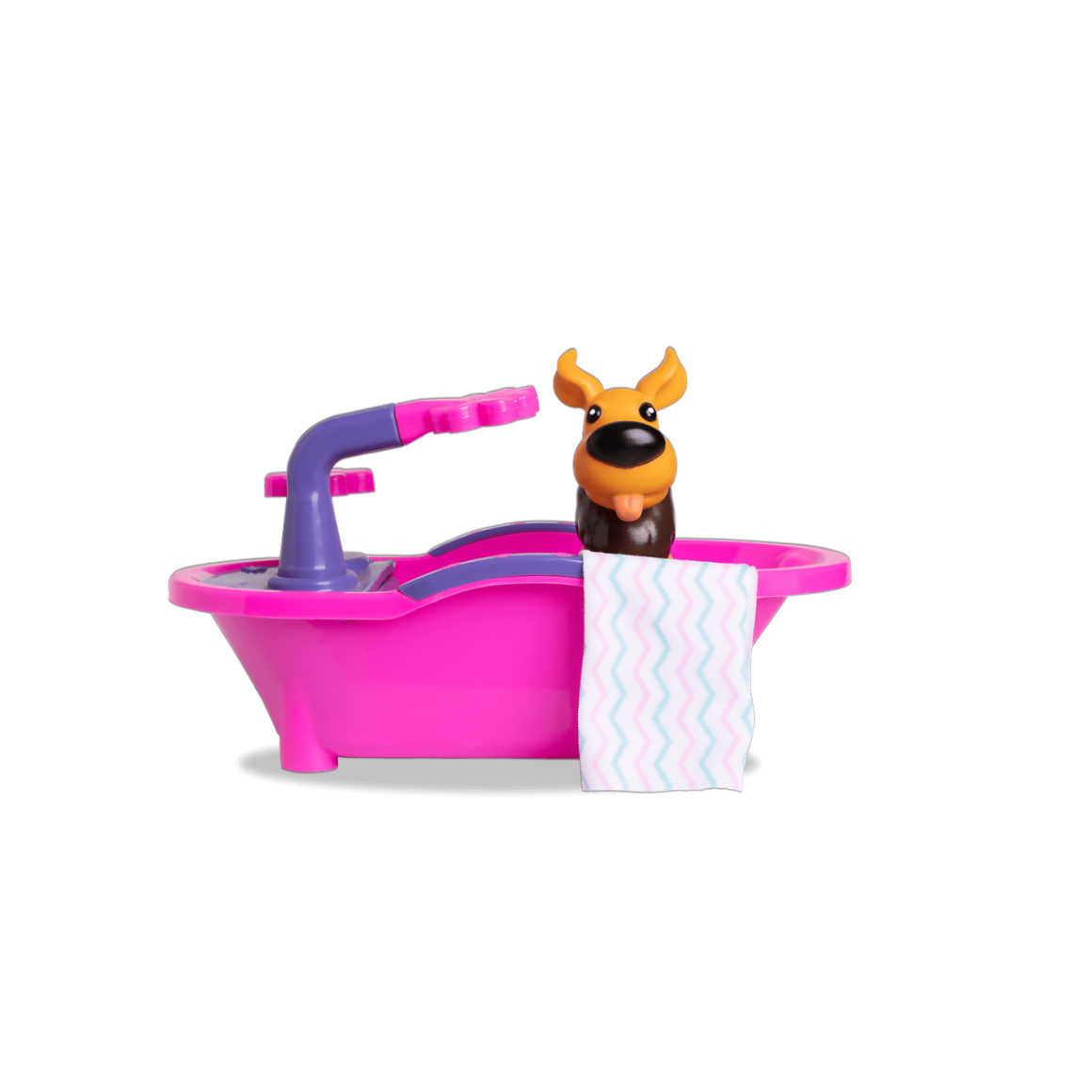 banheira q sai agua de verdade e cachorrinho de vinil com toalha