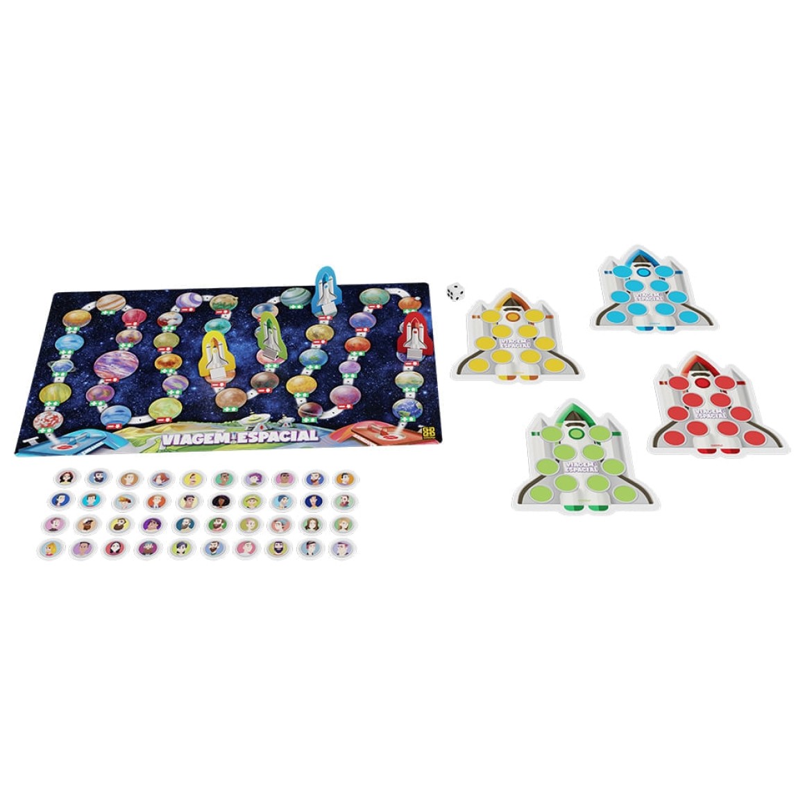 O Viagem Espacial é um jogo para crianças de 4 a 7 anos, e precisa ter entre 2 e 4 participantes. O objetivo é chegar ao final do tabuleiro com o maior número de passageiros. Para isso, você precisa jogar um dado para definir em qual planeta sua nave vai chegar.