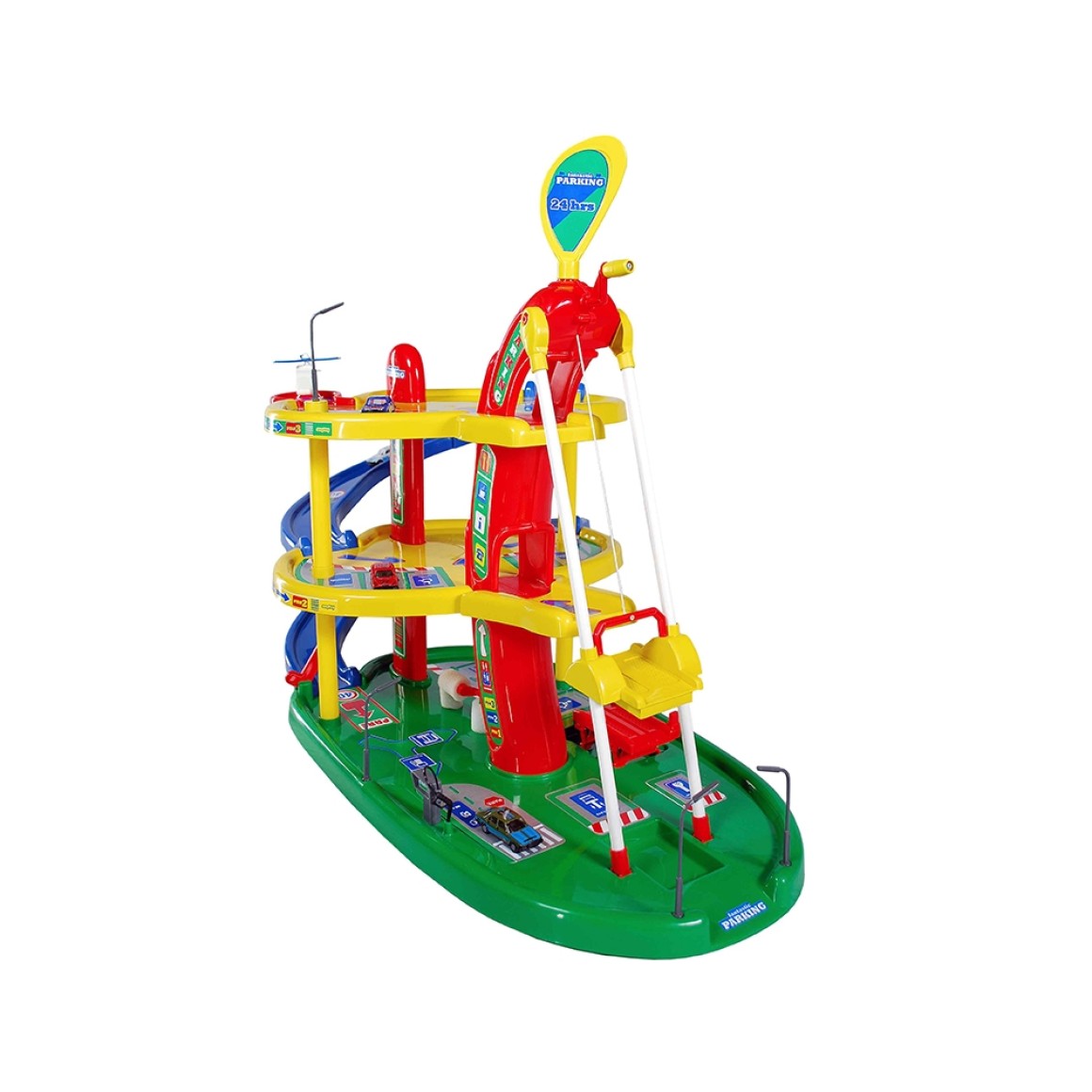 O Super Parking é um incrível brinquedo interativo onde possui mecanismos manuais que permitem a criança interagir com o brinquedo. Simulam práticas de rotina de um grande estacionamento, onde pode levar seu carro, dirigir, estacionar, colocar gasolina, subir e descer com o automóvel no elevador e lavar seu carro é super divertido!