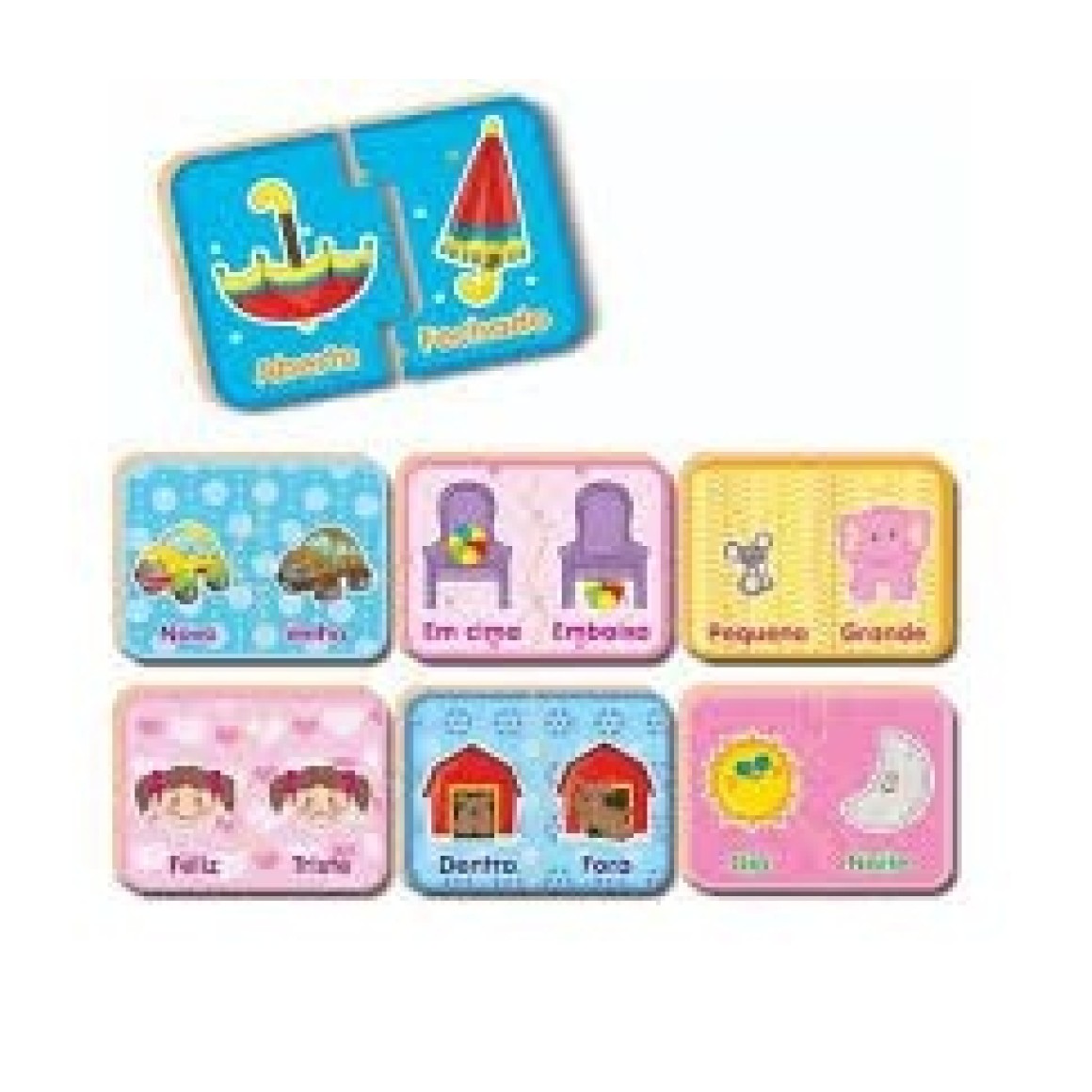 Com 24 pares ilustrados para encaixar (48 peças no total), este jogo educativo estimula o desenvolvimento da linguagem, amplia o vocabulário e reforça o raciocínio lógico das crianças. Ideal para a fase de alfabetização e para o aprendizado através da associação de imagens e conceitos!
